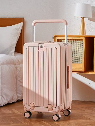 24-inch wide rolling suitcase! One-touch front opening + charging port + dual U-shaped compartments, silent universal wheels for worry-free travel.